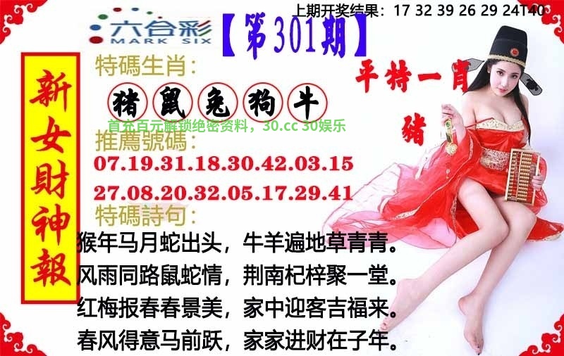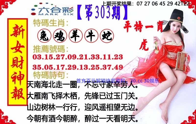 306期:白姐特段/简单发财诗/马会欲钱料/七娘一句中/开藏特图料